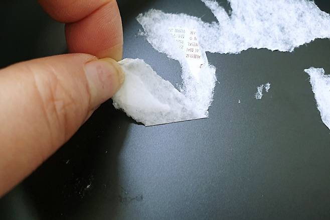 반대쪽으로 다시 떼어내려고 했는데 반대쪽은 더 강력하게 접착되 있네요. 접착력이 강해 억지로 떼어낸다 해도 찐득한 끈끈이가 남는데요. 이럴 때 괜히 스트레스받지 마시고 이것 하나만 준비하세요.