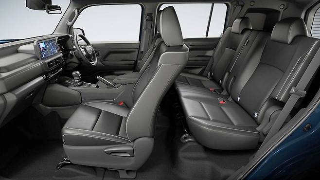 디지털 계기판과 대형 인포테인먼트 스크린이 적용되었지만, 공조 장치는 물리 버튼을 유지해 직관적인 조작성을 살렸다. 장갑을 끼고도 손쉽게 조작할 수 있어야 하는 오프로드 차량의 특성을 고려한 설계다. 큼직한 기어 셀렉터와 오프로드 주행 모드 버튼들은 이 차의 성격을 명확히 보여준다.