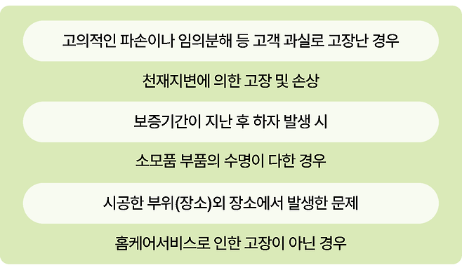 다만 위에 해당하는 경우는 서비스 불량에 포함되지 않습니다.