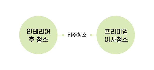 [인테리어 후 청소]는 '리모델링 후', [프리미엄 이사청소]는 '이사 전'에 활용됩니다.