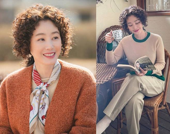 김성령이 빈티지한 컬 헤어스타일과 아날로그 감성 가득한 패션으로 새로운 매력을 발산했습니다.