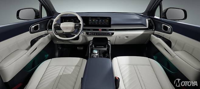 The 2026 쏘렌토는 새로운 디자인의 4스포크 스티어링 휠이 탑재됐으며, 앰비언트 라이트가 1열 도어 맵포켓까지 확대 적용돼 실내 고급감이 더욱 향상됐다.