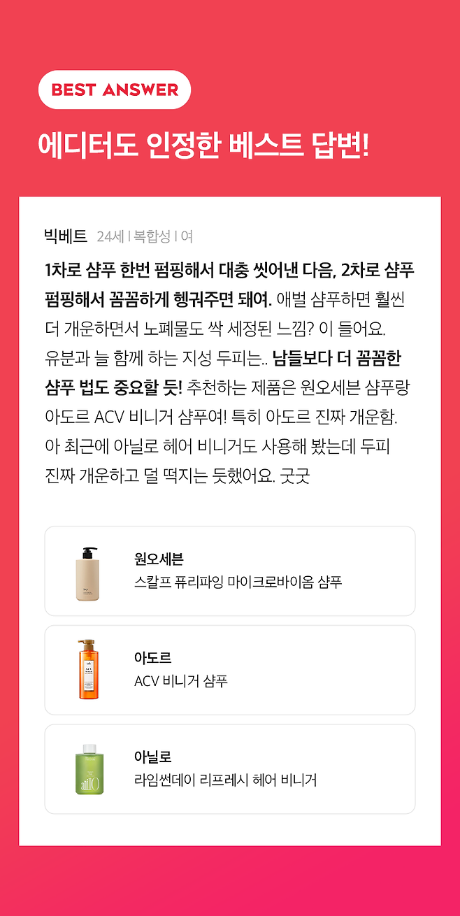 같은 고민을 가진 뷰티 고수들이 추천하는 레전드 아이템을 참고해 보세요.