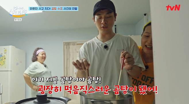 그때 수프 담당 안은진은 야심차게 수프 만들기를 시작했다. 그러나 계산착오로 물양 조절에 실패, 박정민은 "이거 실패다. 굉장히 먹음직스러운 곰탕이 됐다"고 해 웃음을 안겼다.