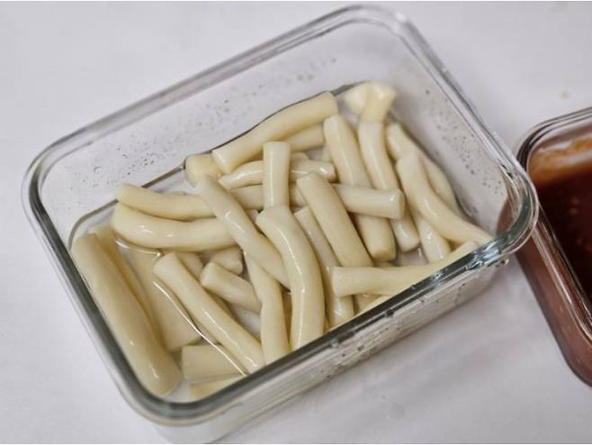 떡을 먼저 물에 담가두거나, 전자렌지에 물을 살짝 넣고 1분 정도 돌려서 떡을 말랑하게 만들어주세요.