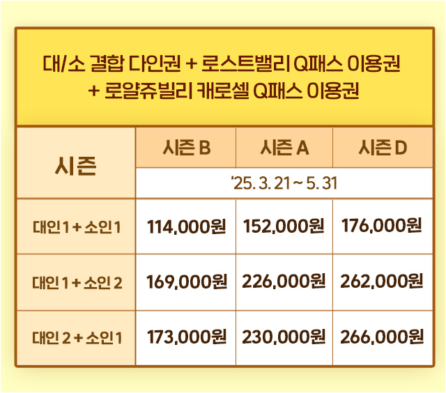 👉 B시즌 114,000원 / A시즌 152,000원 / D시즌 176,000원