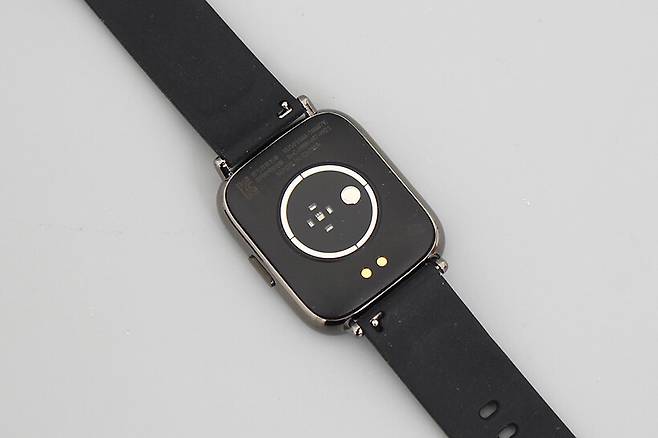 TEERON 스마트 워치는 심박수 측정부터 산소포화도, 혈압 등 다양한 신체 측정 기능이 내장되어 있는데, 뒷면의 센서들이 이 기능을 수행하고 있다.
