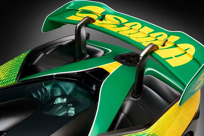 또한, 차량의 유리창, 루프, 필러를 포함한 상부의 하단 부분에는 녹색과 흰색 테두리가 둘러져 있으며, 윈드스크린 하단 에어벤트에는 세나의 레이스 헬멧에서 영감을 받아 디자인되었습니다.