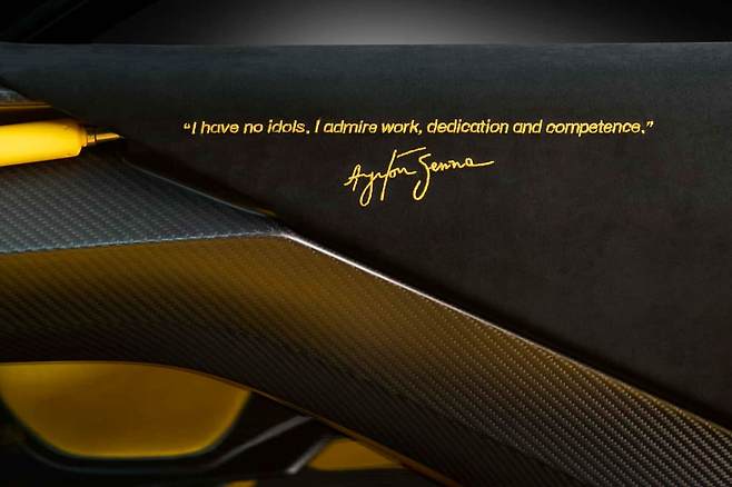 세나가 획득한 3번의 F1 월드 챔피언십 타이틀과 5회의 모나코 그랑프리 우승 기록이 디자인 요소에 포함되었습니다.