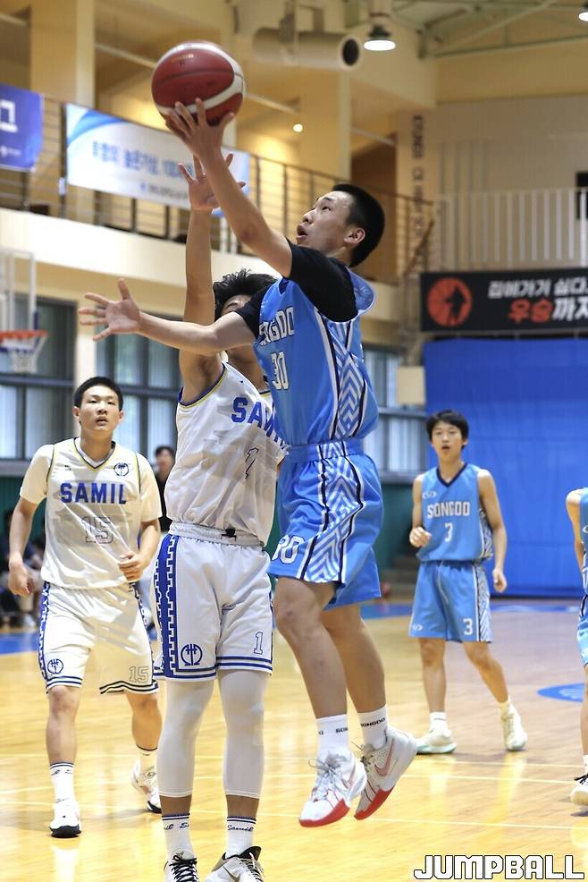 [점프볼=종로/박호빈 인터넷 기자] 13일 경복고 체육관에서는' 2024 한국중고농구 주말리그' 서울,경기,강원B권 예선이 열렸다. 삼일중이 송도중을 상대로 69:56 승리를 거두었다.