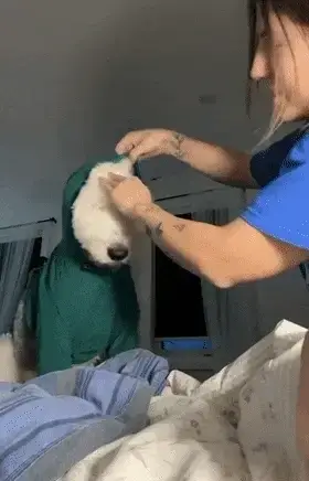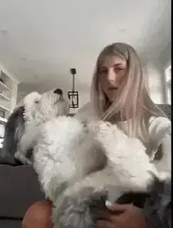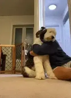 주인 품에 안기면 커다란 아기처럼 조용히 기대 따뜻함을 즐기고, 주인이 갑자기 껴안으면 "당신 곁에 있으면 안심이야"라고 말하는 듯 사랑스럽게 주인에게 머리를 기댑니다.