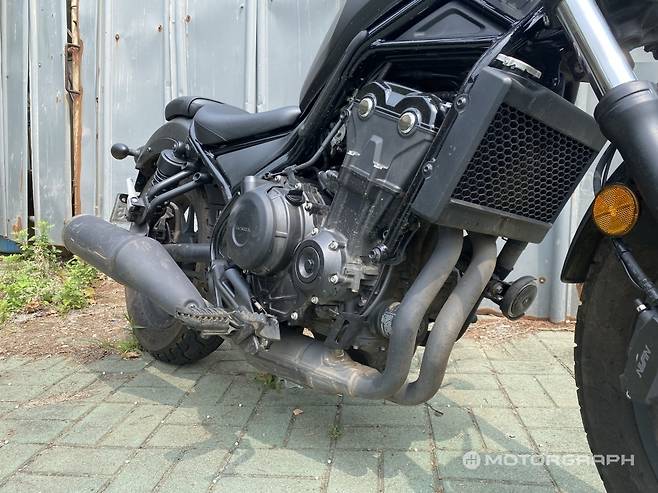 레블 500은 최고출력 46마력, 최대토크 4.4kg.m을 발휘하는 471cc 수랭식 병렬 2기통 엔진을 품고 있다. CBR500R, CB500F 등과 공유하는 엔진으로, 고회전 성향의 세팅을 중ㆍ저속 영역에 집중할 수 있도록 개량했다.