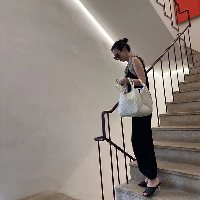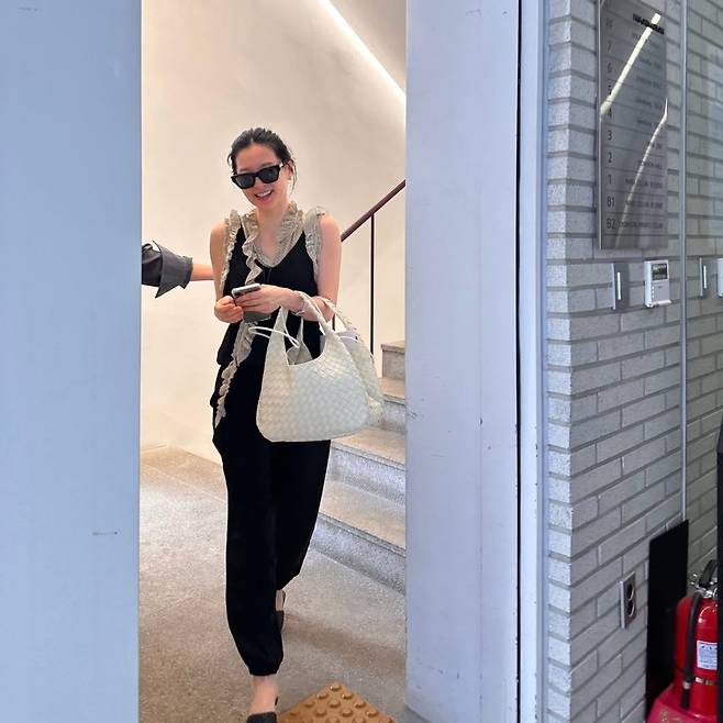최근 자신의 SNS에 공개된 사진 속 이영애는 편안한 블랙 점프수트에 화려한 러플 장식을 더한 독특한 스타일을 선보였다.