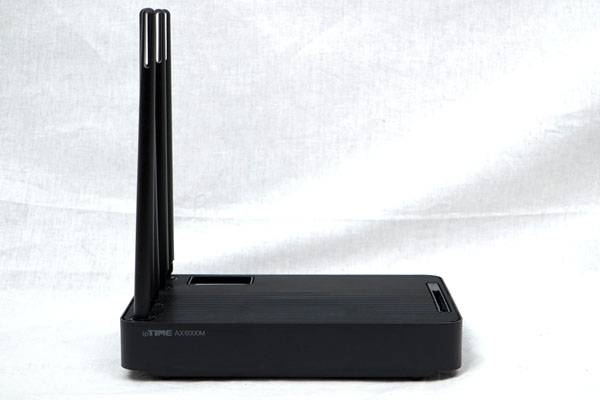 ipTIME AX6000M 유무선 공유기는 230 x 160 x 42.7mm 크기의 본체에 2.4GHz/5GHz 듀얼밴드를 지원하는 4개의 5dBi 안테나가 달려있다.