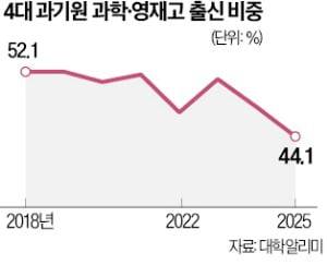 2025학년도 4대 과학기술원 신입생 중 과학고·영재학교 출신이 차지하는 비중이 8년 새 최저치를 기록한 것으로 나타났다.
