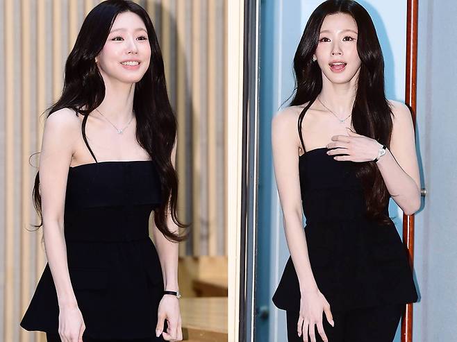 미연은 블랙 튜브톱과 슬랙스를 셋업으로 착용해 우아하면서도 고혹적인 분위기를 자아냈습니다.