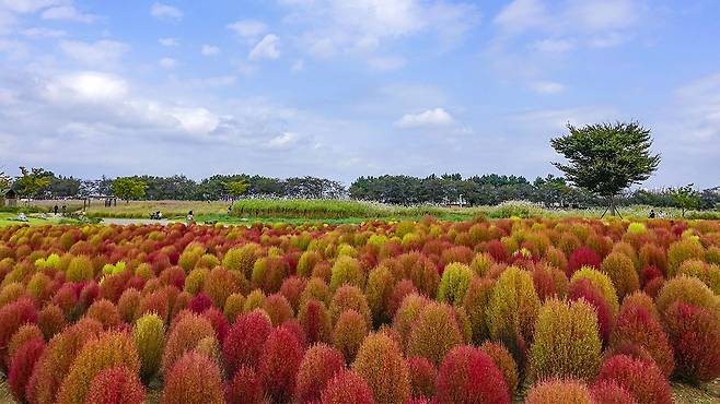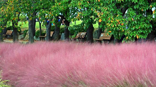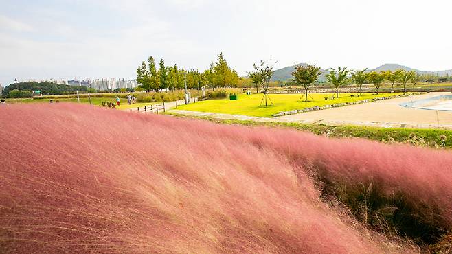 특히 가을이면, 공원은 붉게 타오르는 댑싸리밭과 분홍빛 핑크뮬리로 장식되며 수많은 여행자들의 카메라를 유혹합니다.