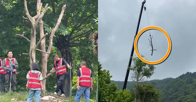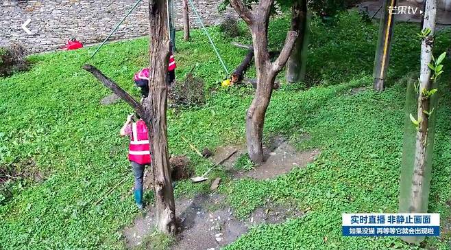 선수핑 기지는 푸바오 생중계를 시작으로 같은 시간 다른 판다들의 모습도 생중계 하고 있는데요. 지난 19일 오전 이 다른 판다의 방사장에 어부바 나무를 놓기 위해 인부들이 작업하는 모습이 카메라에 잡혀 화제가 됐습니다.