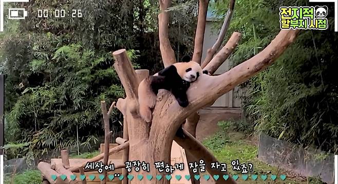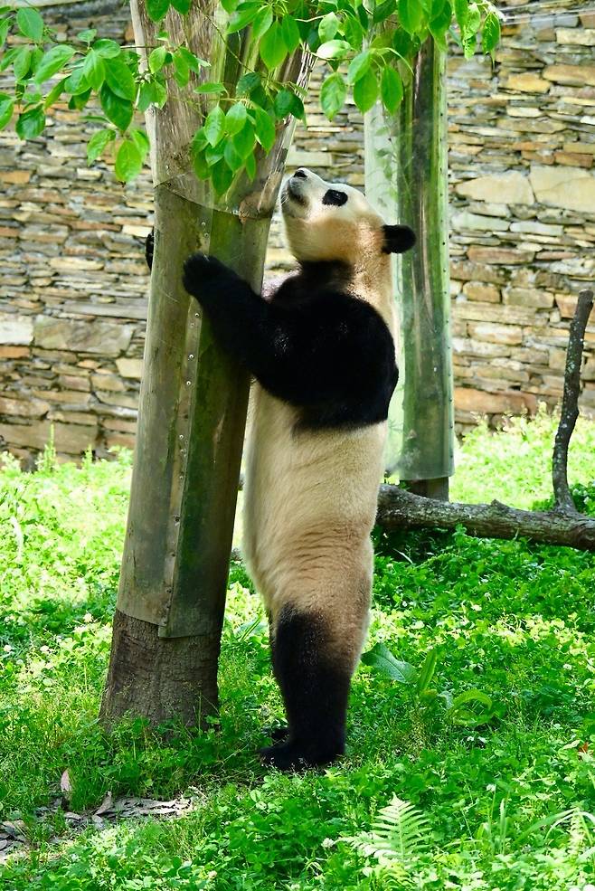 푸바오는 에버랜드에 있을 때 사육사들이 마련해준 '어부바 나무'에 올라가 자는 것을 좋아했습니다. 최근 푸바오는 오를 수 없는 나무를 살피다가 결국 포기하고 밑동에 기대 먹이를 먹는 모습을 보여 많은 팬들의 코끝을 시큰하게 만들었는데요. 부디 이번에 푸바오의 방사장에도 나무가 생겨 한국에서처럼 편히 쉴 수 있기를 바랍니다.