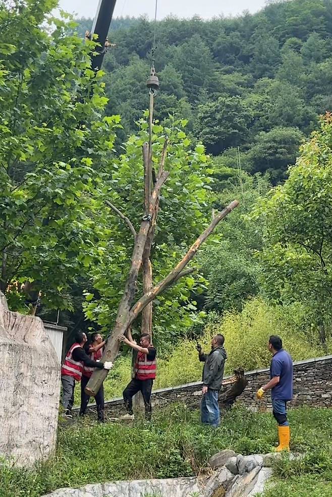 다만 현재 나무를 설치하고 있는 곳은 푸바오 방사장이 아닌 다른 판다의 방사장입니다. 하지만 실망하기엔 아직 이르다는 분위기입니다.