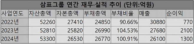 삼표그룹의 전체 계열사 수는 지난해 말 기준 28개이며 연간 실적으로 매출 2조6100억원, 순이익 1300억원을 각각 기록했다.