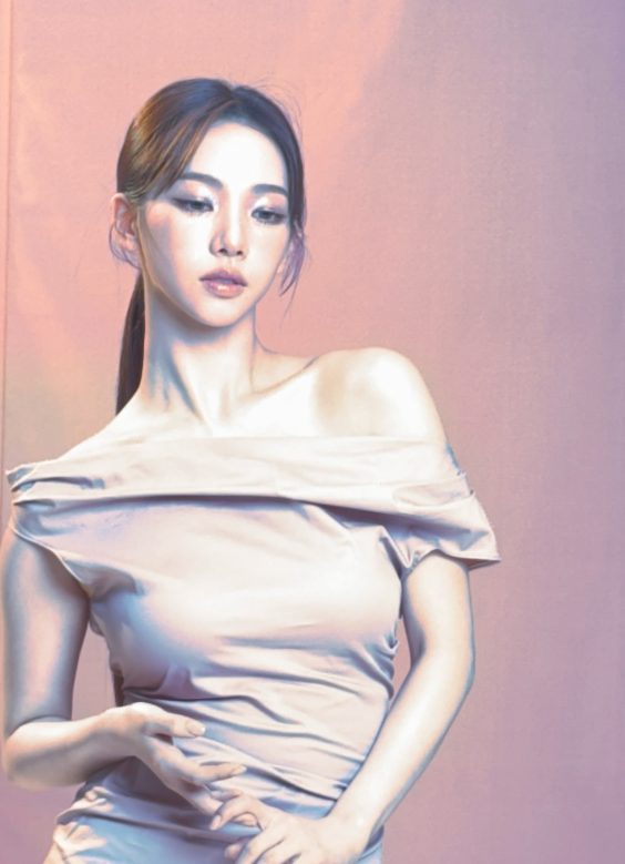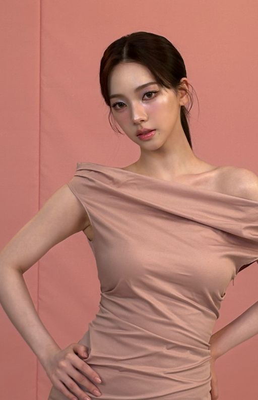 이너 없이 단독으로 착용해 원 숄더 디자인의 매력을 그대로 살렸고, 깔끔하게 묶은 헤어스타일이 어깨와 목선을 더욱 돋보이게 합니다. 불필요한 요소를 덜어낸 연출 덕분에 전체적인 인상은 정제되고 세련되며, 드레스 하나만으로도 충분히 매혹적인 분위기를 완성합니다. 공식적인 자리나 드레스업이 필요한 순간에 참고하기 좋은, 절제된 우아함이 돋보이는 스타일입니다.