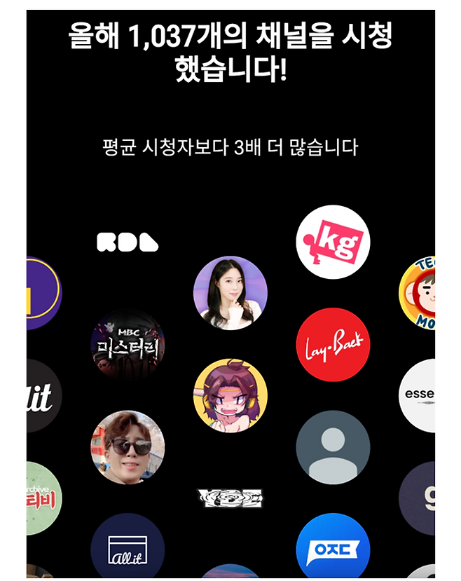 유튜브 리캡에서 제공하는 내용에는 올해 가장 많이 본 채널, 주요 관심사, 누적 시청 채널 개수, 시청 성향 패턴 등으로 구성된다. 여기에 유튜브 뮤직까지 이용하고 있다면 연간 최다 재생곡이나 앨범, 선호 아티스트 등의 청취 기록도 살펴볼 수 있다.