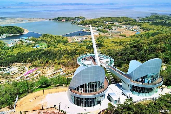 화개정원에서 꼭 들러야 할 곳은 '화개산 전망대'입니다. 전국 최대 규모의 스카이워크형 전망대로, 7km 떨어진 북한 황해도 연백평야와 강화군의 아름다운 다도해를 한눈에 조망할 수 있습니다.