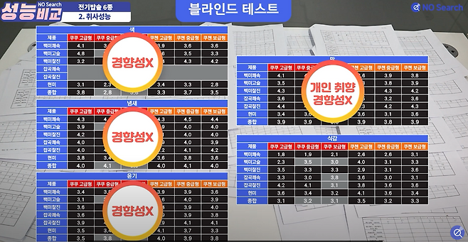 취사 모드 별, 제품 간 차이에 대해 구별해 내지 못하는 경우가 많았습니다.