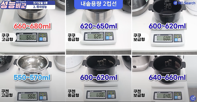 IH 압력 밥솥 중에 인기 제품 6개를 체급별로 나누어 구매 했습니다.