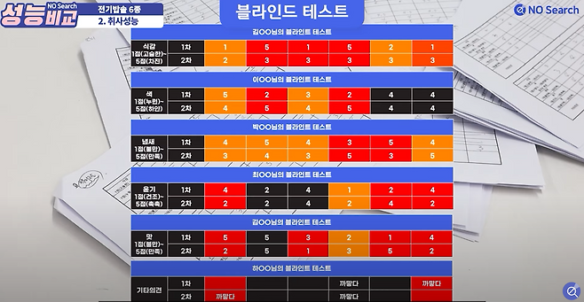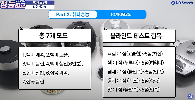 취사 모드 별, 제품 간 차이에 대해 구별해 내지 못하는 경우가 많았습니다.