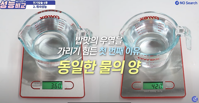 보다 정확한 통제를 위해 제품간 물의 양을 통일시켜 취사를 했는데,