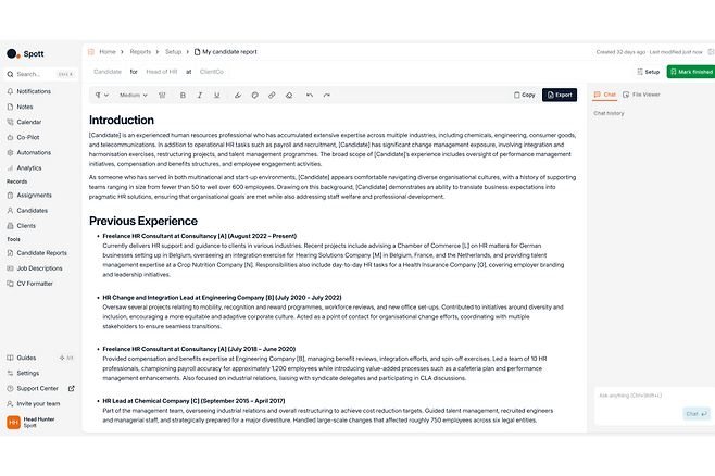 이후 스팟은 채용 공고 등록, 서류 검토, 면접 조율, 평가, 보고서 작성 등 전 과정을 하나의 플랫폼에서 관리할 수 있는AI 기반 ATS(채용관리솔루션)를 개발했다. 며칠씩 회사 내부 데이터베이스와 채용 플랫폼의 인재 정보를 검색할 필요가 없게 됐다.