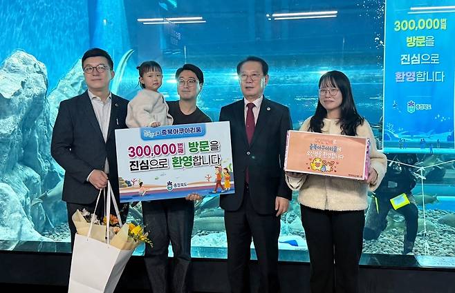 30만 명째 방문 주인공은 주말을 맞아 가족 나들이로 충북아쿠아리움을 찾은 청주시 오창읍의 33살 오한영 씨입니다.