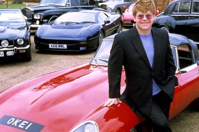 전설적인 싱어송라이터 엘튼 존은 한때 20대가 넘는 클래식카와 슈퍼카를 소유했던 왕년의 자동차 수집광이다. 1980년대와 1990년대에는 페라리, 벤틀리, 애스턴 마틴, 롤스로이스 등 영국의 럭셔리 브랜드를 집중적으로 수집했다. 2001년 크리스티 경매를 통해 자신의 차량 다수를 매각했는데, 그 컬렉션에는 재규어 E 타입, 애스턴 마틴 V8 볼란테와 같은 희귀 명차들이 포함되었다. 그의 차고는 음악의 화려함과 시대를 초월하는 럭셔리함이 교차하는 공간이었다.