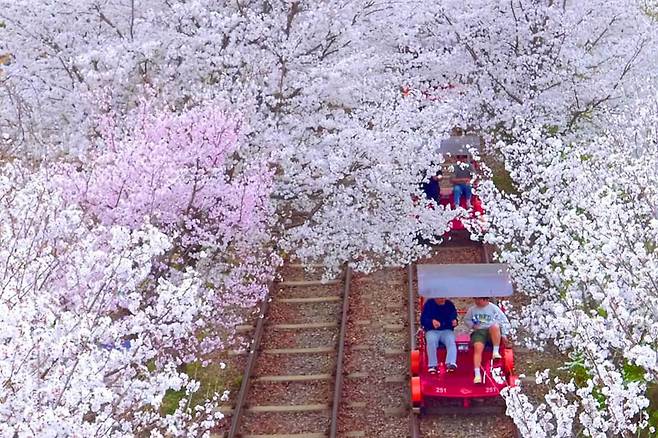 왕복 약 1시간 10분이 소요되며, 벚꽃이 만개하는 4월이면 철길을 따라 분홍빛 꽃터널이 펼쳐지는 장관을 만날 수 있습니다.