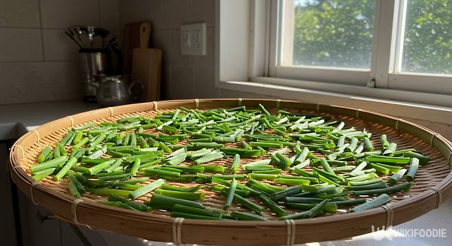 4. 오래 남은 부추는 건조해 두고두고 사용한다
