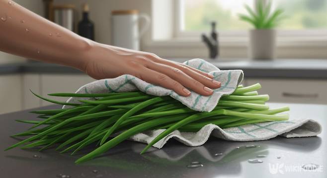 이미 씻은 부추는 수분을 머금은 채소 특성상 보관이 쉽지 않다. 표면에 남은 물방울이 부패를 유도하고, 금방 물러지게 만든다. 흐르는 물에 씻은 부추는 체에 받쳐 물기를 털어낸 후 키친타월로 잎과 줄기를 꾹 눌러 닦는다. 여기서 충분히 건조되지 않으면 이틀도 버티지 못하고 변질될 수 있다.