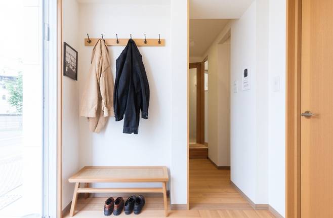 현관: 첫인상을 결정하는 공간인 만큼, 밝고 깔끔한 분위기를 연출하는 것이 중요합니다.