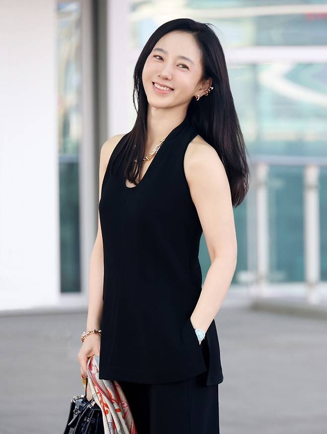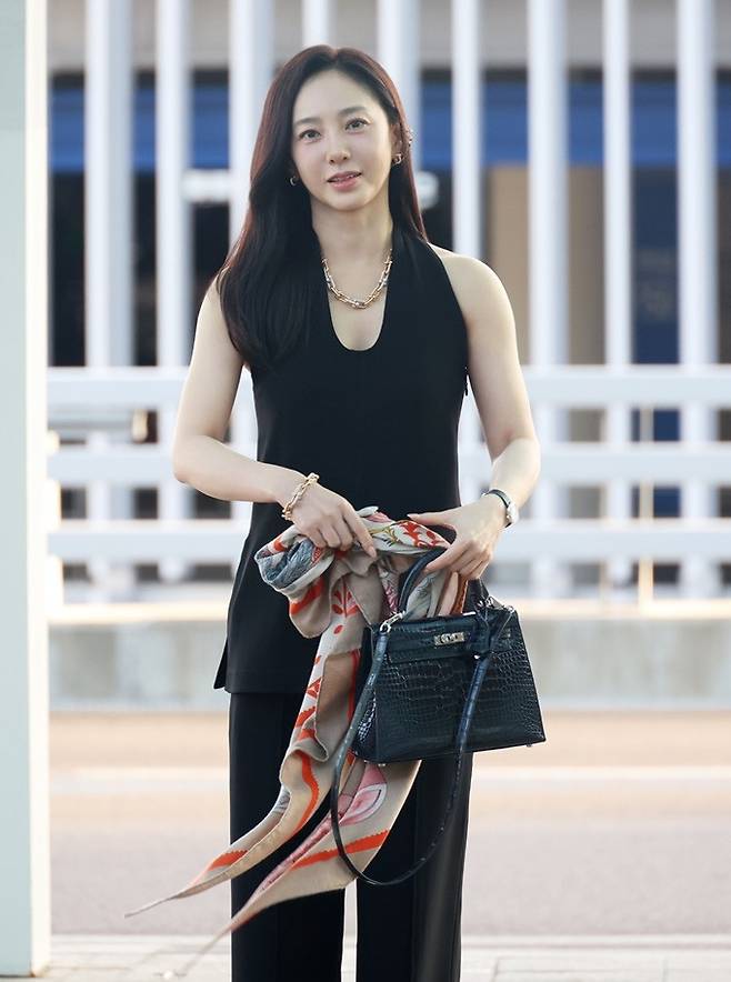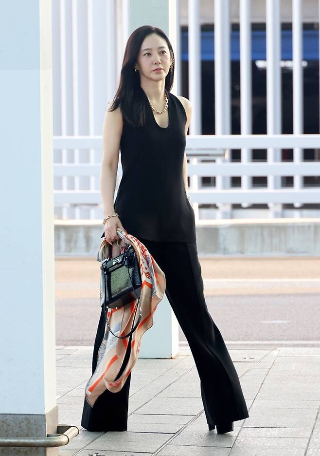 배우 박주미가 시크한 테일러드 섬머 슈트룩으로 세련된 공항패션을 연출했다.