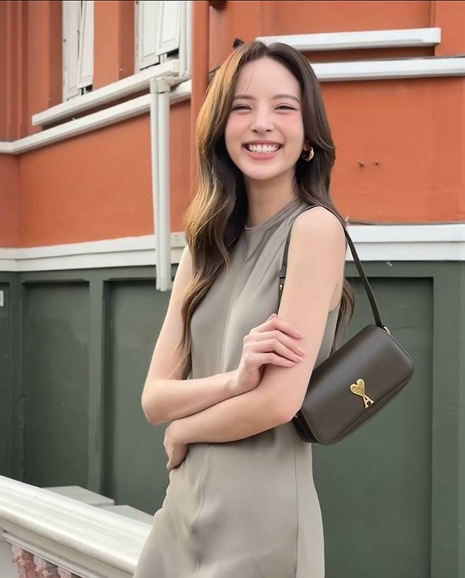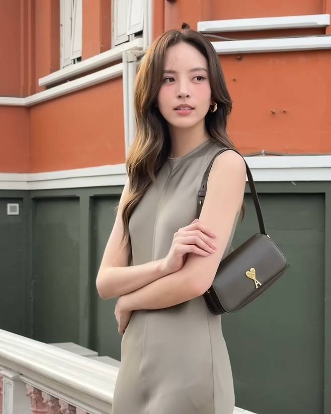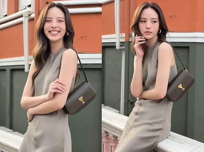 니차는 그레이 톤의 하이넥 슬리브리스 원피스를 선택해 절제된 미니멀 감성과 함께 몸에 흐르듯 감기는 실루엣을 강조하며 도시 한복판을 런웨이처럼 바꿔놨습니다.