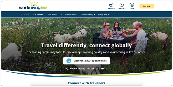 워커웨이는 노동력과 숙식을 바꾸는 플랫폼이다. 사용법은 앞과 비슷하다. 나를 소개하는 프로필을 만든다. 24시간 안에 승인이 난다. 찾아갈 지역의 호스트를 찾아 연락을 한다. 얼마나 머무를지, 머무르는 동안 뭘 할 수 있을지 상의를 거친다. 여행지에서 일을 하고 밥과 잘 곳을 제공 받는다. 일은 대체로 공공성을 띈 학교, NGO, 배, 동물 복지, 농장 등이 많다. 언어 교환, 번역, 가사 도움, 아이 돌보기, 페인트칠, 게스트하우스 스태프 같은 일도 있다. 20년이 넘은 플랫폼으로 184개국에 5만 개가 넘는 일자리가 등록되어 있다.