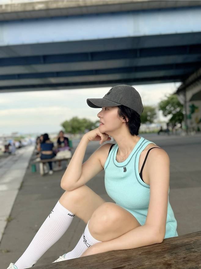 자연스럽게 내린 짧은 헤어와 심플한 캡 모자가 내추럴 꾸안꾸 매력을 더했으며, 심플한 운동복조차 럭셔리하게 소화하는 송선미만의 독보적인 운동룩 감각을 드러냈습니다.