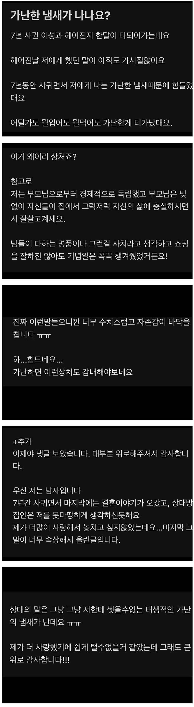 남자에게 씻을 수 없는 태생적인 가난의 냄새가 난다는 여자