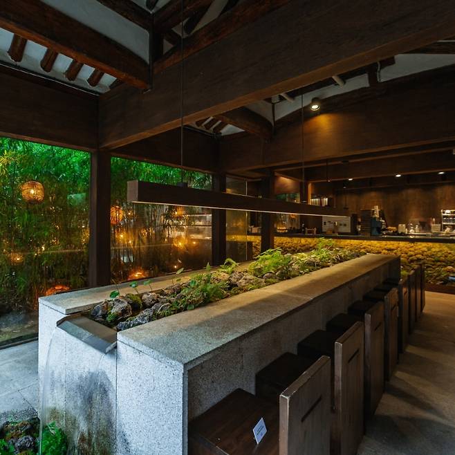 눈이 내린 듯한 백자갈의 바닥, 매일 불을 때우는 정원 한편의 화로에 이끼가 자라나는 나무 욕조 등 실제 일본 온천에서 샤브샤브를 먹는듯한 분위기가 압권이죠. 보글보글 끓는 샤브샤브를 먹으며 서울 속 미니멀한 일본 여행을 즐겨보는 것도 서울 데이트 코스로 어떠신가요?