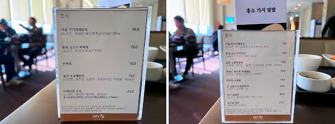 아침은 아메리칸 조식과 전복죽 등을, 점심은 해장국, 유산슬 덮밥 등을 다른 골프장 보다 조금 저렴한 가격에 판매하고 있습니다. 같은 골프장임에도 대식당 운영사가 달라서 그런지 하늘코스보다 식사 가격이 저렴합니다.
