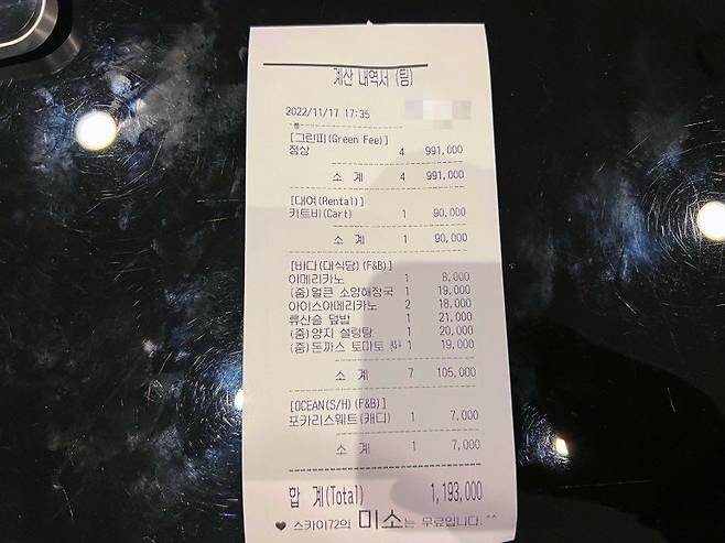 오션코스를 방문하면 언제나 힘들게 플레이하는 거 같습니다. 생각보다 스코어가 잘 안 나오는 편인데 이날 동반자들까지 난리가 나는 바람에 사이에서 멘탈 지키는 게 쉽지 않았습니다. 버디는 안 나오고 더블보기는 기록하고 간신히 70대 스코어에 턱걸이한 라운딩이었습니다.