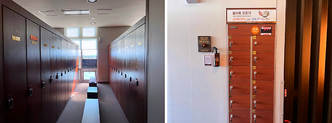 라커룸 공간도 넓고 54홀의 골프장답게 많은 개수가 있습니다. 라커룸 입구 외에 군데군데 신발 건조기가 준비되어 있어 라운딩 후 신발을 말릴 수 있어 좋습니다.