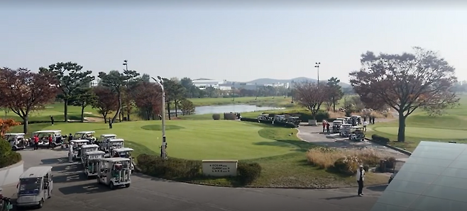 스타트 지점에 나서면 좌우 양쪽으로 연습 그린이 준비되어 있고, 그린 주변에서 어프로치 연습도 가능합니다. 오션코스는 가장 좌측으로 카트가 대기해있고 정면은 클래식 코스, 11시 방향으로 레이크 코스가 있습니다. 한 가지 특이한 점은 레이크 In 코스로 시작하실 경우 카트를 타고 많이 이동해야 해서 조금 일찍 나와 준비하셔야 합니다. (오션 Out 코스도 5분 정도 카트 타고 이동하셔야 해서 조금 일찍 준비하시면 좋습니다.)