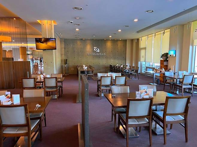 스카이72cc의 대식당은 라커룸, 리셉션과 같은 층에 위치해있고 정갈한 분위기입니다.